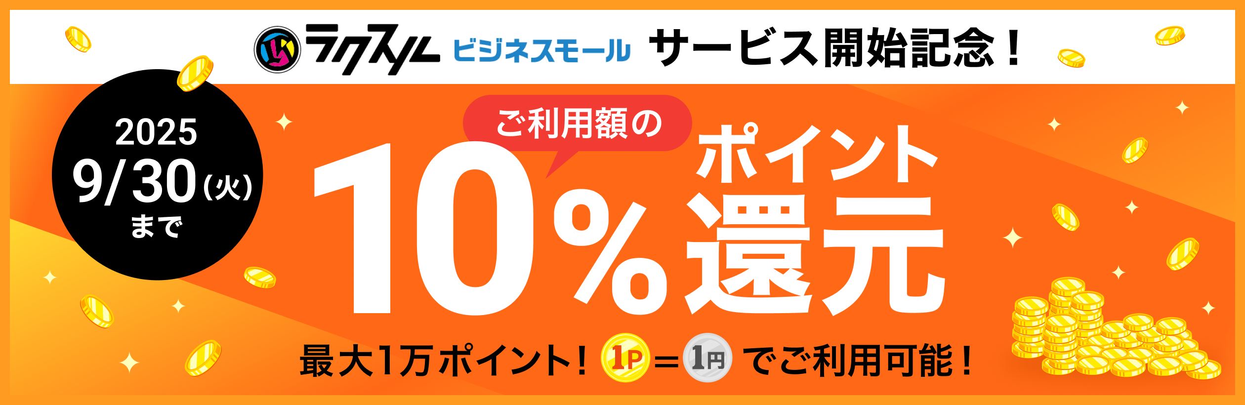 【新サービス】オフィス用品・店舗用品のラクスルビジネスモール!10%ポイント還元キャンペーン実施中