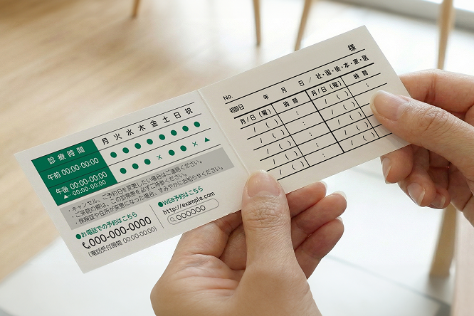 紙製の診察券は、コストパフォーマンスに優れていて、気軽に発行できます。短期治療が中心の医療機関、デザインを頻繁に変更したい場合におすすめです。