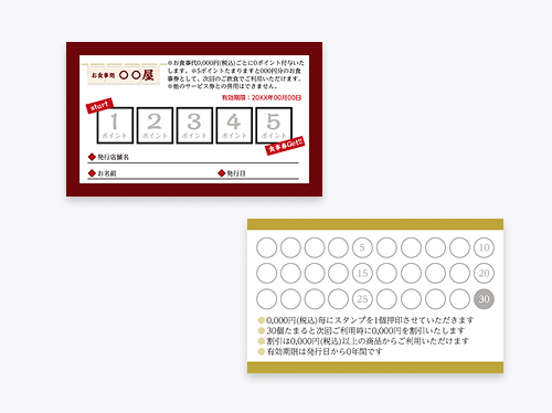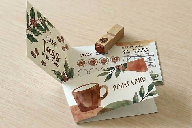 スタンプカードは、来店時にスタンプを押印することでお客様のリピート来店を促進する販促ツールです。