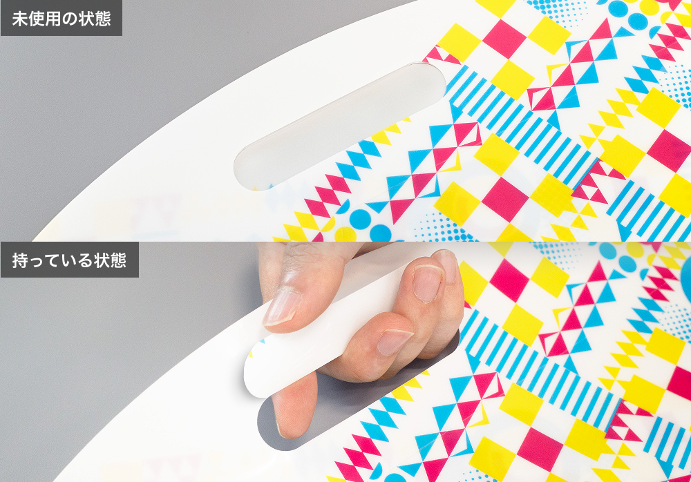楕円形の持ち手が付いているため、書類を入れてそのまま持ち運べます。袋状で渡せるので、受け取った方もすぐに使いやすく、A4資料の保管にも便利です。