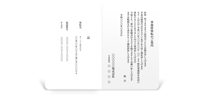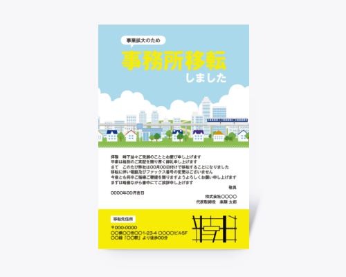 住所変更や移転のご案内など、取引先への通知に最適。ビジネスの信頼感を保ちながら、新所在地を丁寧にお知らせすることができます。
