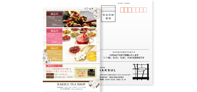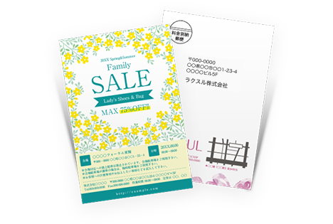 ラクスルでは、裏面の印刷だけでなく宛名印字、発送代行も承っております。