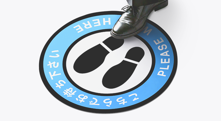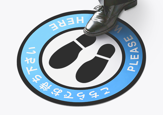 この加工によりステッカー表面の保護だけでなく、人が歩いても滑りにくいため床面の用途として最適です。