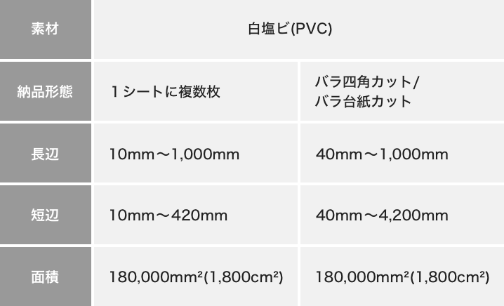 | 台紙ごとカット | 40mm | 1600mm2 |