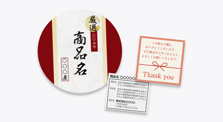 商品ラベルや割引シールなど、業務用シールを大量に印刷したい場合に、1枚あたりの価格を抑えてご注文いただけます。