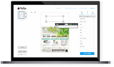 ラクスルはチラシやポスターなどの印刷だけでなく、TVCMやポスティング・新聞折込などの広告、さらにはオンライン上で編集できるデザインソフトなど、印刷に関わるデザインから印刷、配布までをトータルで対応しています。