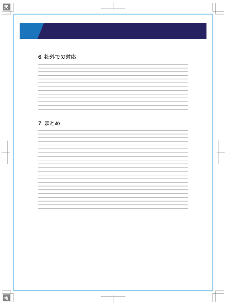 ※イラスト中の青く塗られている部分は、ホチキス(留め具)を示しています。
