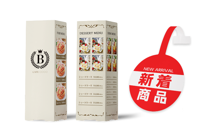 | 対象仕様 | 卓上POP:テーブルテント/三角柱POPの一部サイズ スイングPOP:全種 | POP印刷全種 |