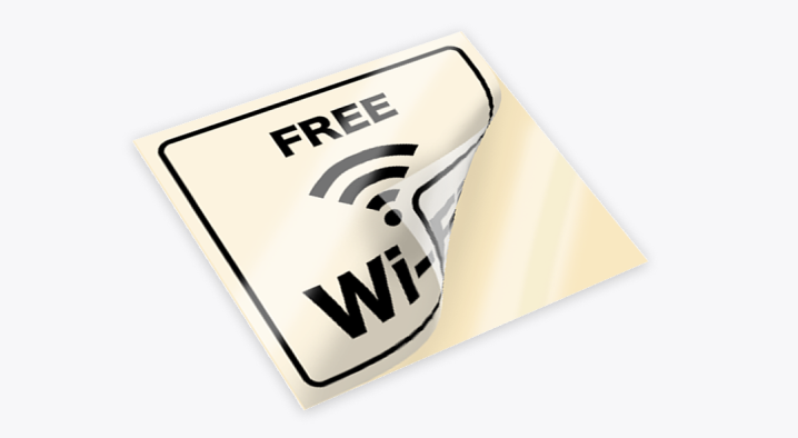 丈夫で水に強い透明のフィルム素材です。透明な容器を使った商品ラベルや窓ガラスへの貼り付けなどで多く使用されています。光沢ラミネート(PP)加工を施すと、耐久性が上がり、コスレに強くなります。デザインを際立たせたい場合は白版をご利用ください。